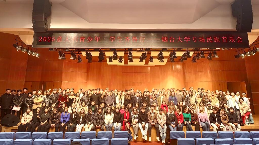 11月2日,由中国驻意大利大使馆和山东省教育厅主办、山东省教育电视台承办的2025年意大利青少年学生齐鲁行烟台站活动在烟台大学举行。来自意大利各高校的80余名学生和我校建筑学院、音乐舞蹈学院的的90余名学生共同开展了丰富多彩的文化交流活动。国际合作交流处、音乐舞蹈学院、建筑学院相关人员参加活动。